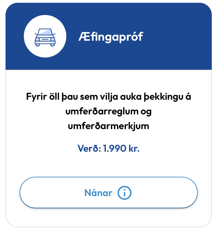 Æfingapróf fyrir bílprófið eru nú í boði í Netökuskóla Ekils. Nemendur sem kaupa námskeið hjá Ekli ökuskóla í fjarnámi fá aðgang að þessum æfingaprófum með keyptu námskeiði en einnig eru þau í boði fyrir nemendur annarra skóla fyrir 1.990 kr.